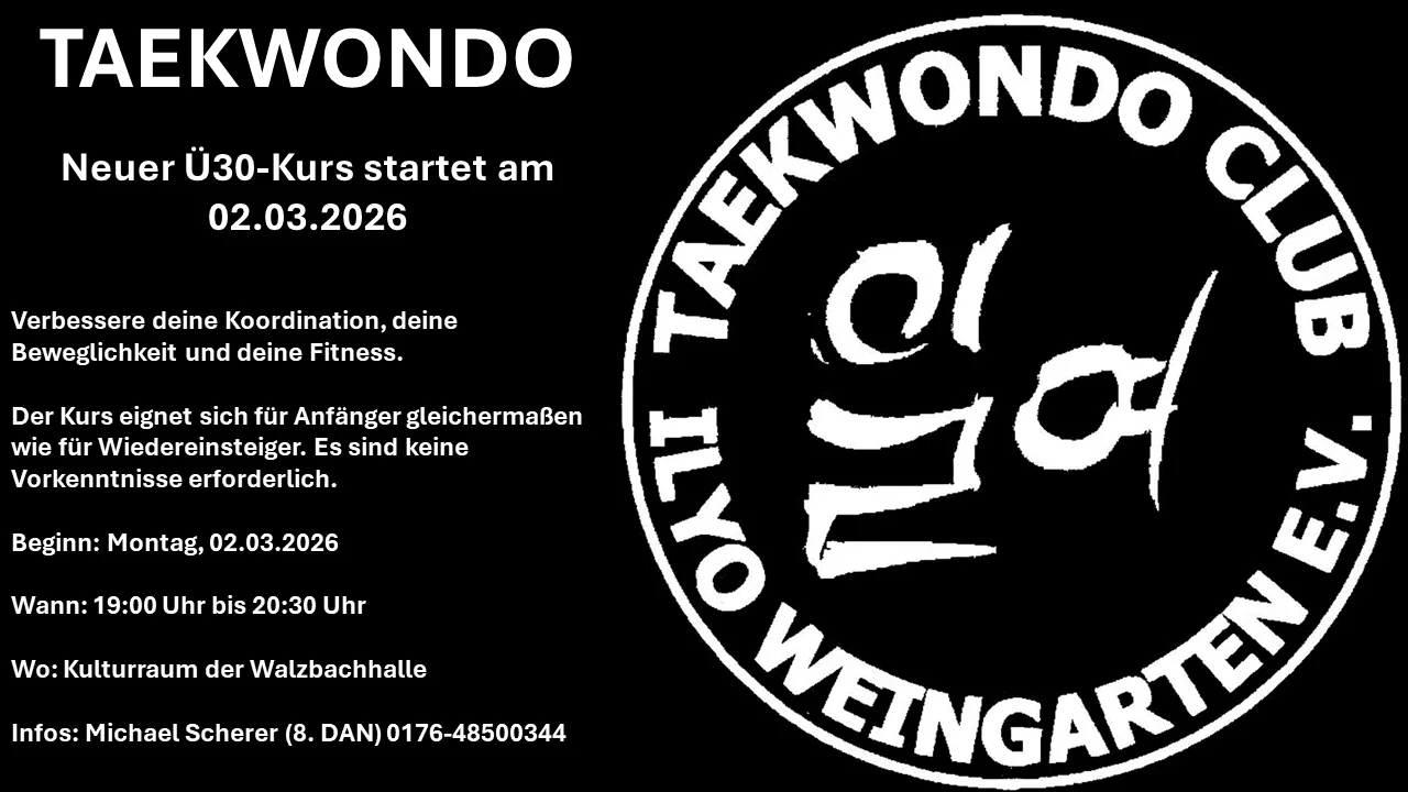 Der Taekwondo Club ILYO Weingarten startet am Montag, den